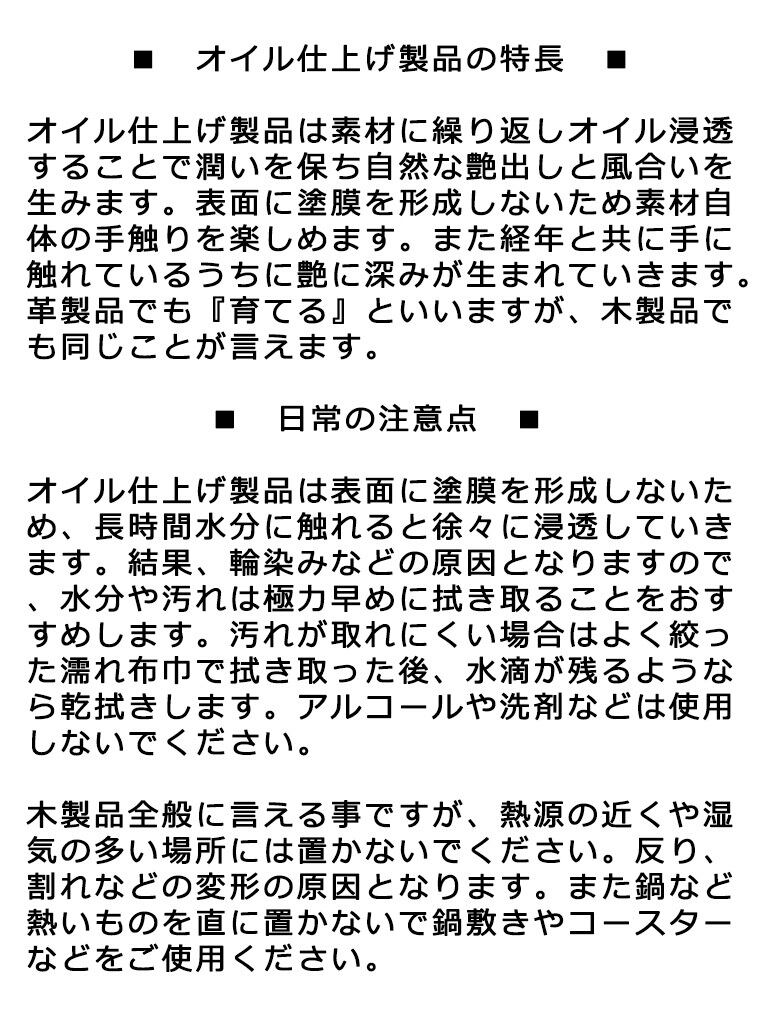 当店では乾燥材を吟味して製作しておりますが、一枚板の特性上使用環境により若干の反りや割れ・ヒビが生じる場合がございます事ご承知おきください。